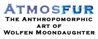 Hello, I am Wolfen Moondaughter. Welcome to my portfolio! If you want to know more about me, please go here. I am a freelance fantasy illustrator, mostly known for "furry" art. I generally work in sketches that I refine on the computer, but I also like to paint in acrylic, or work with markers and coloured pencils, or just do plain line art. I have an Associates in Applied Sciences, with Illustration as my major and Graphic Design as my technical specialty, from the American Academy of Art. I have done a number of commisions(both anthropomorphic and "normal").